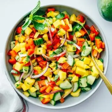 Máte zralé mango a potřebujete způsob, jak je využít? Vyzkoušejte tento jasný a krásný recept na mangový salát! Nic se nevyrovná medové sladkosti šťavnatého manga, a tady je nový způsob, jak jej doplnit. Spárujte s chladnou okurkou, křupavou paprikou a bylinkovou mátou a koriandrem a vše zalijte medově limetkovým dresinkem. Je neodolatelně osvěžující a všestranná příloha ke každému talíři: ideální k rybám, zeleninovým hlavním pokrmům nebo dokonce tacos.