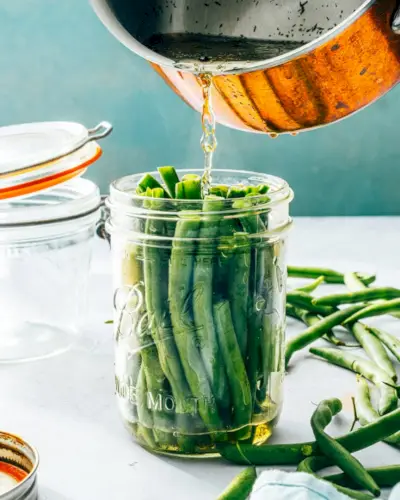 Zde je skvělý způsob, jak uchovat fazole: Nakládané zelené fazole! Tyto oštěpy jsou křupavé a ultra kyselé, s tím správným nádechem česneku a kopru na závěr. Buďte opatrní: budete chtít sníst celou sklenici! Jsou skvělé na občerstvení, uzeniny a sýrové talíře a samozřejmě: staré dobré Krvavá Mary obloha.