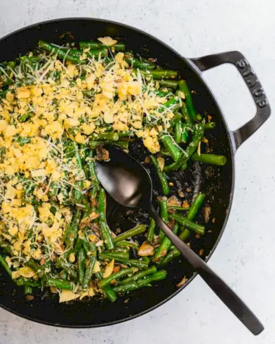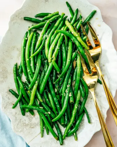 Vyzkoušejte tyto jednoduché česnekově zelené fazolky! Spárování jemných dušených zelených fazolek s pikantním česnekovým máslem je rozezpívá na vašem talíři. Dokonale ochucené jsou působivou přílohou téměř ke všemu: kuře, rybě, těstovinám nebo jakékoli zeleninové hlavní.