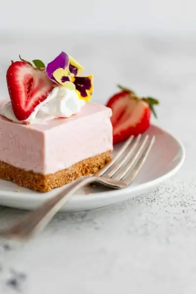 Zde je jahodový dezert, který nevyžaduje vůbec žádné pečení: tyto tyčinky s jahodovým tvarohovým koláčem No Bake! Náplň se snadno našlehá a chutná stejně jako jahodová zmrzlina. Zvýrazněte to křupavou kůrkou z grahamového kreru. přes Dorty pro babičky