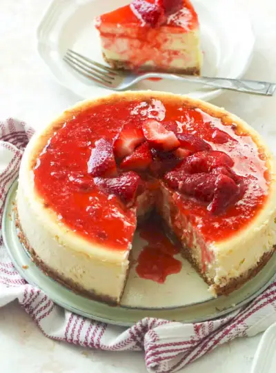 Co je klasičtějšího než jahodový cheesecake? Tento recept je klasický, se smetanovým, bohatým a požitkářským základem newyorského tvarohového koláče. Doplňte čerstvým jahodovým kompotem pro působivý kontrapunkt. přes Neposkvrněné kousnutí