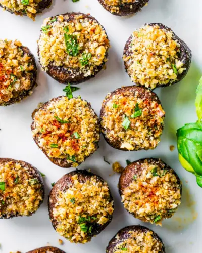 Hledáte skvělý recept na předkrm v italském stylu pro zábavu? Vyzkoušejte tyto plněné houby! Tato malá sousta mají všechno pokračuje: jsou pikantní, masité a bylinkové, s jemným zevnějškem a křupáním v každém soustu. Ještě lepší je, že tento recept je neuvěřitelně snadný: není třeba restovat přísady do náplně. Nakrájejte je, naplňte a upečte!