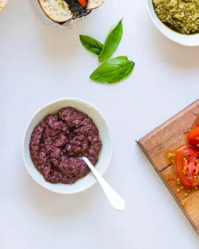 Olivové pasty a pomazánky se často používají v italské kuchyni, na crostini, na sendviče nebo dokonce do salátů. Kupodivu v italštině neexistuje jediný termín pro šíření. Termín tapenáda ve skutečnosti odkazuje na specifický typ olivové pasty, která pochází z Provence ve Francii a je vyrobena z černých oliv, olivového oleje, kapar a ančovičky. Tato olivová pomazánka se skvěle hodí na crostini nebo bruschetta jako rychlý předkrm.