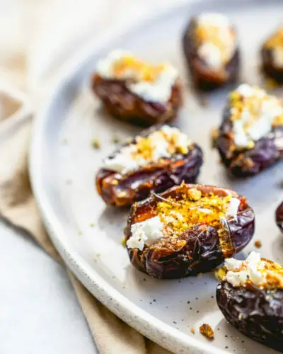 Plněné datle se vyrábějí neuvěřitelně snadno a chuť tohoto jednoduchého středomořského párování je pobuřující. Je tu sladká karamelová žvýkatelnost datlí Medjool. Zkombinujte to s pikantním, nadýchaným kozím sýrem a sladká a slaná kombinace je mimo tento svět. Pro ještě italštější nádech je zabalte do prosciutta.
