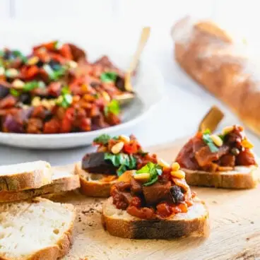 Caponata je italský předkrm plný chuti! Lilek a středomořská zelenina tvoří pikantní česnekovou pomazánku, která se skvěle hodí ke křupavému chlebu.