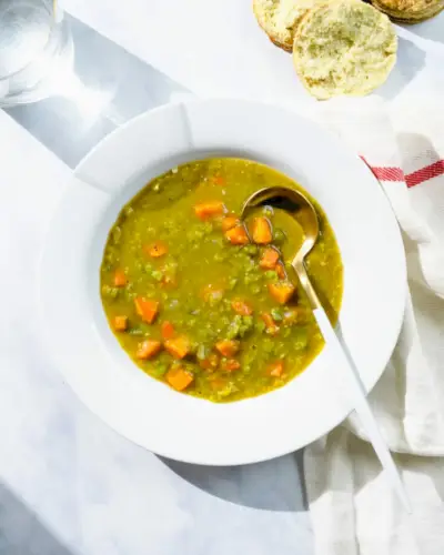 Tento recept na vegetariánskou hrachovou polévku Instant Pot je to nejlepší jídlo! Je sytá, rostlinná a snadno se připravuje v tlakovém hrnci. Plná útulné, lehce kouřové chuti, vše, co potřebujete, je nakrájet 3 druhy zeleniny: cibuli, celer a mrkev. To je vše! Nechte svůj Instant Pot udělat zbytek práce.
