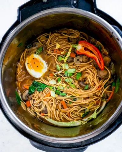 Chcete to nejlepší komfortní jídlo? Napařující se mísy s rozcuchaným ramenem jsou tam, kde to je. Autentický ramen z japonské restaurace je absolutní nejlepší . Ale další nejlepší věc je vyzkoušet to domácí! Můžete použít svůj tlakový hrnec k výrobě ramen? Absolutně. Tento Instant Pot ramen obsahuje pikantní vývar ochucený miso a sójovou omáčkou s umami, jemnými nudlemi a tekutým vejce na měkko .