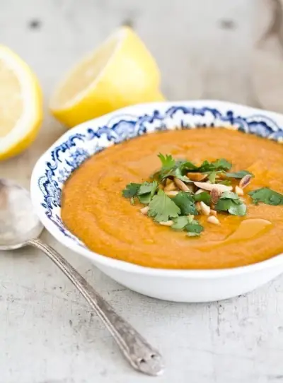 Jasně červená čočka je plná živin a dokáže vyléčit jakýkoli případ podzimního nebo zimního blues! Tento zasněný recept na krémovou veganskou polévku z červené čočky je snadnou večeří, která je hotová za méně než hodinu. Doplňte ji křupavými praženými mandlemi, čerstvým koriandrem a štiplavým citronem a tento snadný recept na polévku je další úrovně.