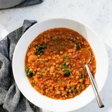 Co z toho dělá nejlepší čočkovou polévku? Řekněme, že každý, komu jsme to naservírovali, se okamžitě zeptá na recept… a sekund. Tahle je tak plná vydatné chuti, že se budete cítit, jako byste byli zabaleni do příjemného objetí. Zmínili jsme se, že je to také rostlinný recept na večeři?