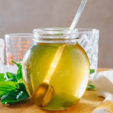 Tato bazalka jednoduchý sirup má intenzivní, bylinně svěží chuť. Napijte se a vaše chuťové pohárky jsou okamžitě zaplaveny bylinkovým popem! Použijte jej k výrobě řemeslných koktejlů, mocktailů nebo jiných nápojů. Zde je několik nápadů: