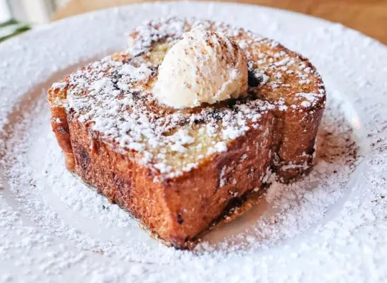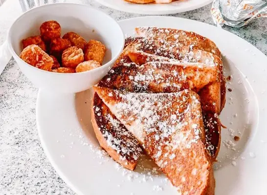 Během této okouzlující snídaně a oběda si každý stěžuje na velké porce a přiměřené ceny snídaně. Colby's Extrémně hustý francouzský toast je nutností!