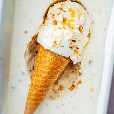 Tento tvarohová zmrzlina je bohatý, krémový a dekadentní! Vychutnejte si to obyčejné nebo přidejte grahamové sušenky pro promíchání podobné kůrce.