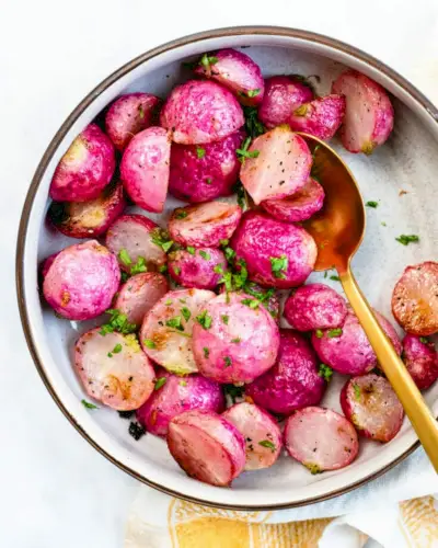 Jak to vařit: Ředkvičky se obvykle konzumují syrové a existuje pro ně mnoho využití! Francouzi je jedí s máslem a solí! Nakrájejte je na tenké plátky a jezte je na toastu, udělejte z nich salsu nebo je házejte do nejrůznějších salátů. Nebo samozřejmě, jsou skvělé i na vegetariánském tácu!