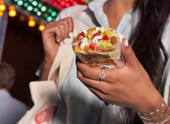 770 kalorií, 34 g tuku, 6,5 g nasyceného tuku, 2230 mg sodíku, 77 g uhlohydrátů, 22 g vlákno, 5 g cukru, 37,5 g proteinu (Vypočteno na základě základny rýže z krajky, černých fazolí, barbakoa masa, zeleniny pypha, rajčatové salsy a guacamole)