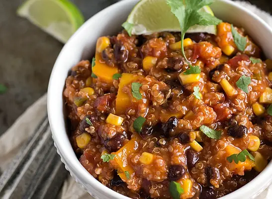 Komosowy je jedním z módních zdravých jídel, které vyhrál chválu. Kromě toho je super všestranný a lze jej použít místo těstovin a rýže v jídle, jako je tato pomalá pec mexické quinoa. Pokrytí hladu je nejen plné vlákniny (12,4 gramů na část v této misce!), Ale velké zrno obsahuje všech osm potřebných aminokyselin, což činí jedno z mála zrn považovaných za plné protein.