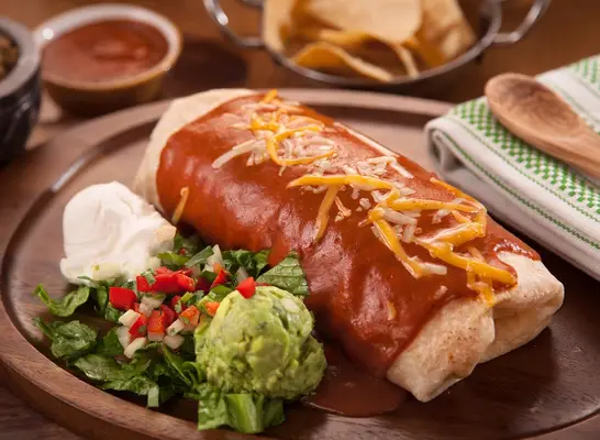 1 115 kalorií, 39,5 g tuku, 15,5 g nasyceného tuku, 2 165 mg sodíku, 129 g uhlohydrátů 19 gg vlákniny, 8 g cukru, 58,5 g proteinu (vypočtené černé fazole, bílá rýže, sýrem, zakysanou smetanou