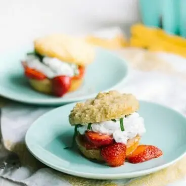 - Zatímco se koláče pečou, omyjte jahody a nakrájejte je do střední mísy. Vmíchejte cukr a balzamikový ocet, poté za občasného míchání nechte stát až do podávání.