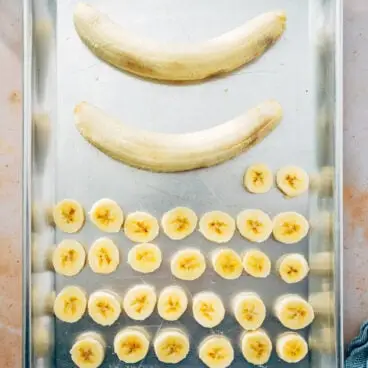 Kolik plátků banánu je v 1 banánu? Použijte poměr 15 1/2 banánových plátků = 1 střední banán. Pokud tedy vaše smoothie vyžaduje 1 banán, použijte asi 15 plátků.