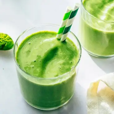 Milujte nápoje jako a matcha latte nebo ledové matcha latte ? Pak se vám to bude líbit Matcha Smoothie : pyré ze zeleného čaje a sladkého ovoce! Smíchejte tento prášek ze zeleného čaje s banánem a ananasem a je lehce sladký s jemným hořkým podtónem matcha. Je to skvělý způsob, jak získat všechny výhody zeleného čaje při pití ovocného pyré! Zde je návod, jak rádi připravujeme matcha smoothie.