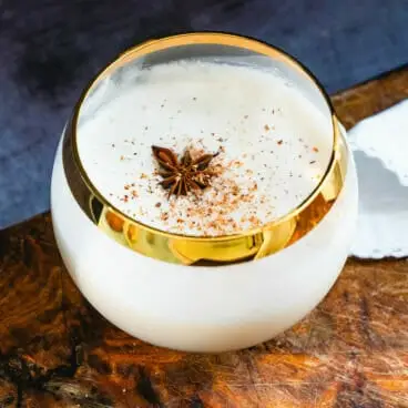 - Nápoj sceďte do nízké kulové sklenice. Ozdobte čerstvě nastrouhaným muškátovým oříškem a případně badyánem.