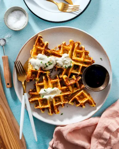 Bramborové vafle můžete podávat slané nebo sladké, díky čemuž jsou neuvěřitelně univerzální! Máme je rádi jako slanou snídani nebo předkrm přelité zakysanou smetanou a pažitkou. Ale jsou stejně dobré sladké s javorovým sirupem. Zde je několik slaných a sladkých způsobů, kterými je rádi doplňujeme: