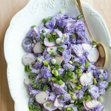 Mám fialové brambory a potřebuješ recept? Zkuste tyto fialová bramborová kaše , ideální způsob, jak využít tuto zářivou zeleninu! Tato jednoduchá příloha maximálně využije jejich zářivě fialovou barvu a rozmačká je na krémové pyré s česnekem, máslem a pažitkou. Vypadají krásně na talíři a v krásném odstínu je jistá novinka, ale chutnají stejně jako běžný česnek bramborová kaše !