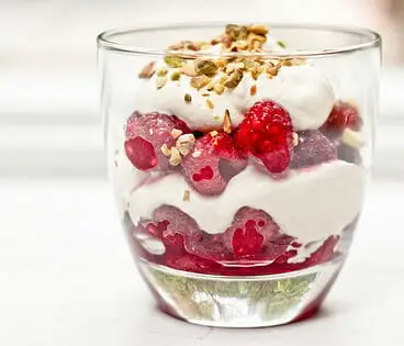 - K podávání navrstvěte maliny, smetanu a pistácie do malých skleniček nebo misek.