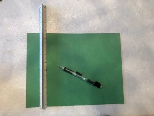 Položte stavební papír naplocho a označte místo za původním místem (opět jsem měřil půl palce). Postupujte podle stejných kroků jako výše a nakreslete další čáru pro místo řezu. Tyto dvě čáry by měly být kolmé.