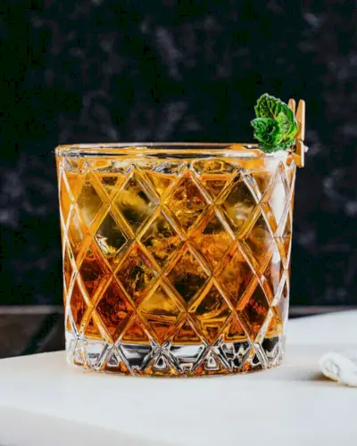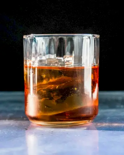 - Nápoj sceďte do připravené sklenice. Ozdobte a citronový twist nebo oranžový twist.