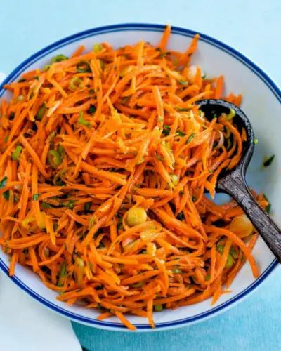 Podávejte tento mrkvový salát s lososovými placičkami a všichni na vás budou zpívat chválu! Je to jednoduché a osvěžující, obsahuje provázky mrkve zalité ve štiplavém vinaigrettu ve středomořském stylu. Stačí hrst ingrediencí a máte zdravou přílohu, kterou nebudete chtít přestat jíst.