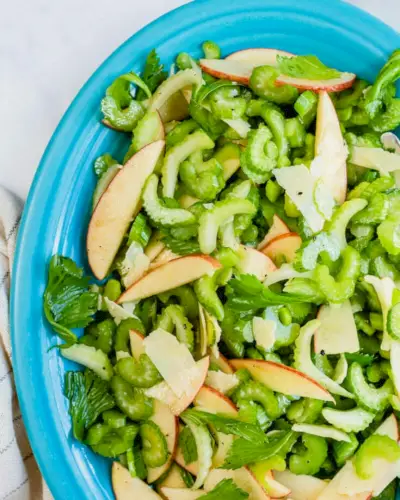 Zde je překvapivě lahodný salát, který si zaslouží místo na vašem talíři podávaný s plněnou paprikou: celerový salát ! Tento jedinečný salát je tak osvěžující, že se z vás stane konvertita od prvního soustu. Křupavý celer se dokonale hodí ke sladkému jablku, hoblinkám parmezánu a pikantnímu vinaigrette.