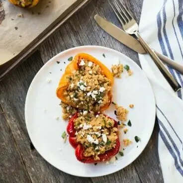 Quinoa je skvělá příloha k servírování s plněnými paprikami: zvláště pokud již není plněná uvnitř! Zde je náš způsob číslo 1, jak okořenit quinou: jen pár jednoduchých ingrediencí ji přemění z nevýrazné na překypující chutí! Má ten správný nádech másla, česneku a sušených bylinek. Vyzkoušejte také jakékoli celozrnné, které nejsou plněné uvnitř vašich paprik.