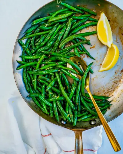 Jedna z nejlepších příloh pro plněné papriky: restované zelené fazolky! Tento recept je naší osvědčenou metodou, která funguje vždy. Je snadné ho připravit na týdenní večer, ale na párty je dostatečně luxusní. Fazole jsou lahodně křupavé a na talíři vedle paprik vypadají elegantně.