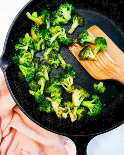 Tato smažená brokolice je naší oblíbenou přílohou a je ideální pro podávání s plněnými paprikami! Je dokonale křupavá a plná pikantní chuti: a to není snadné s brokolicí. Domácí kuchaři často brokolici převaří nebo ji dostatečně neokoření, takže vznikne hnědozelený nezáživný nepořádek. Zde je návod, jak ji smažit na pánvi, aby byla tou nejchutnější věcí na vašem talíři!